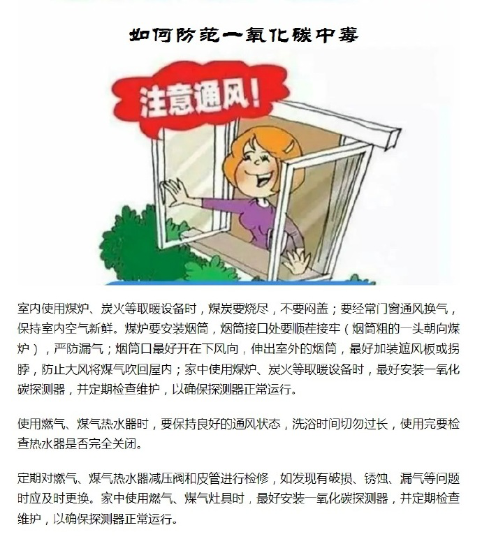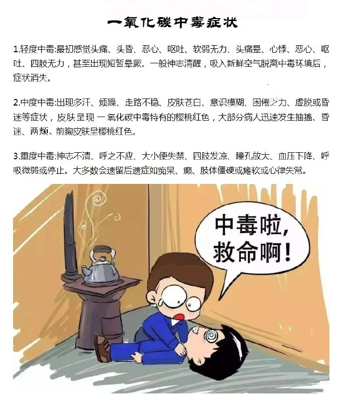 一氧化碳是一種無色無味的氣體,不易察覺。人吸入一氧化碳后,一氧化碳與血液中的血紅蛋白結(jié)合,氧便失去了與血紅蛋白結(jié)合的機(jī)會,從而導(dǎo)致呼吸困難,甚至窒息死亡。#一氧化碳中毒是什么癥狀#?如何防范一氧化碳中毒?戳圖了解↓