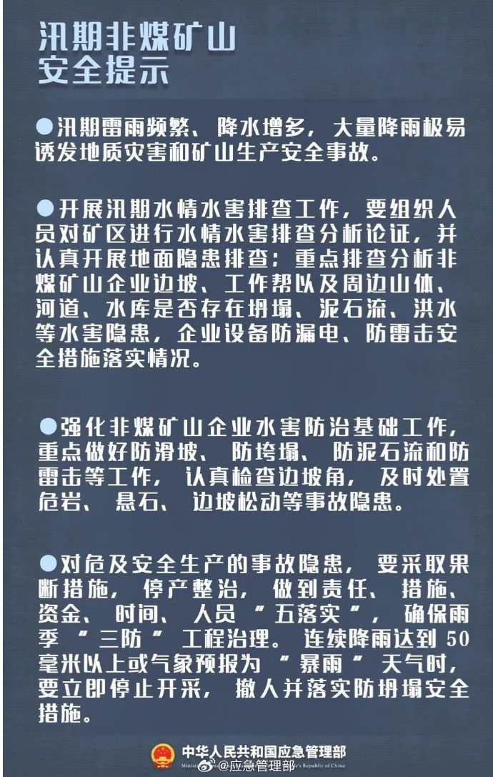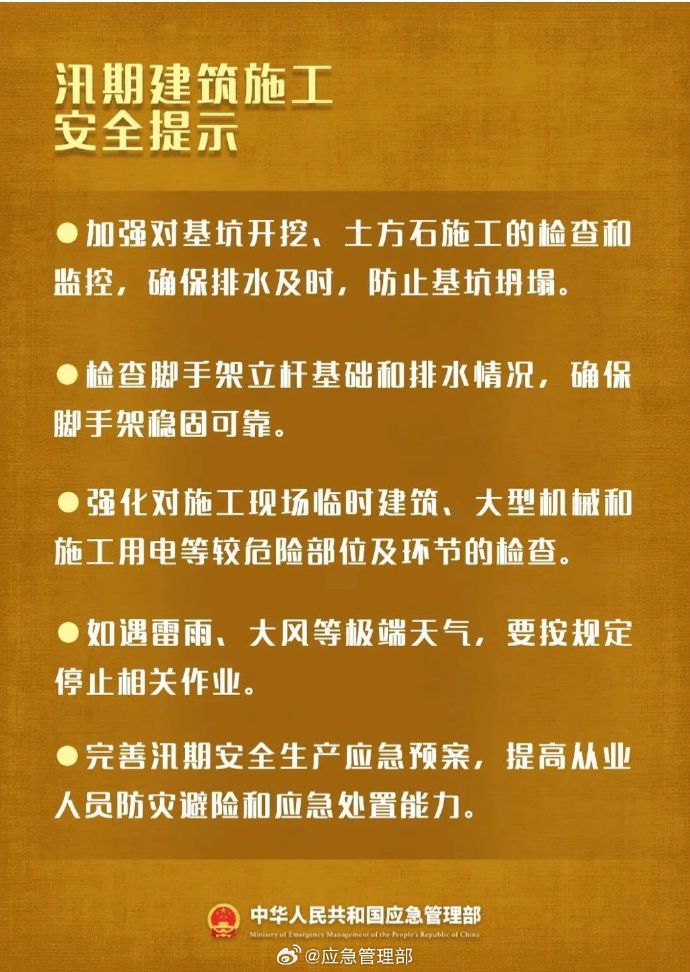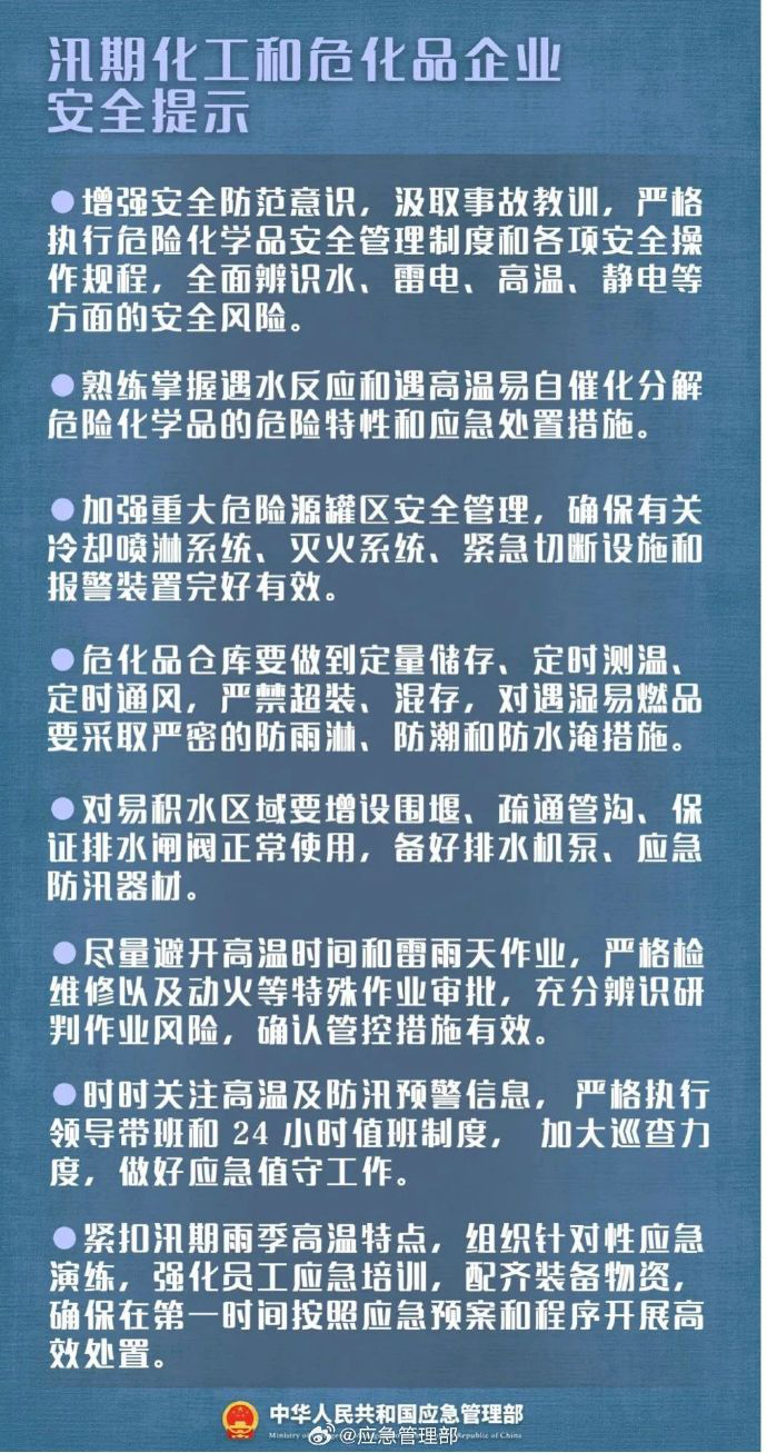 近期,多地發(fā)生暴雨洪水災(zāi)害。汛期天氣多變,雷雨、大風(fēng)、冰雹等強(qiáng)對(duì)流天氣頻發(fā)。重點(diǎn)行業(yè)領(lǐng)域如何做好汛期安全生產(chǎn)風(fēng)險(xiǎn)防控?4類行業(yè)領(lǐng)域安全提示↓↓