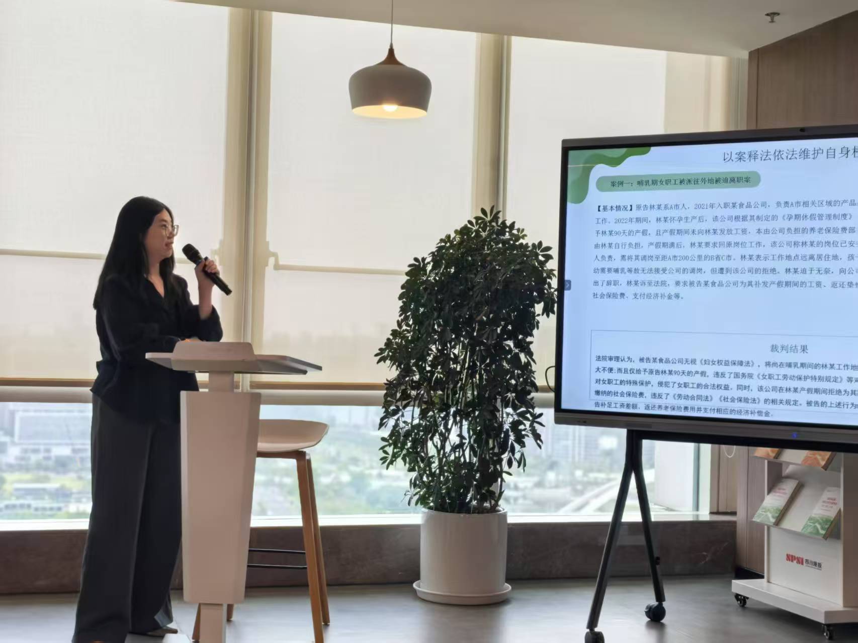 本次活動(dòng)邀請(qǐng)發(fā)現(xiàn)律師事務(wù)所專職律師楊乃姝律師圍繞維護(hù)女職工合法權(quán)益開(kāi)展專題培訓(xùn)。楊律師重點(diǎn)解讀新修訂的《中華人民共和國(guó)婦女權(quán)益保障法》九大亮點(diǎn)及《女職工勞動(dòng)保護(hù)特別規(guī)定》關(guān)于“三期”(孕期、產(chǎn)期、哺乳期)及勞動(dòng)合同保護(hù)、法律責(zé)任等相關(guān)規(guī)定,結(jié)合案例進(jìn)行深入闡釋,并給出全流程解決方案。
