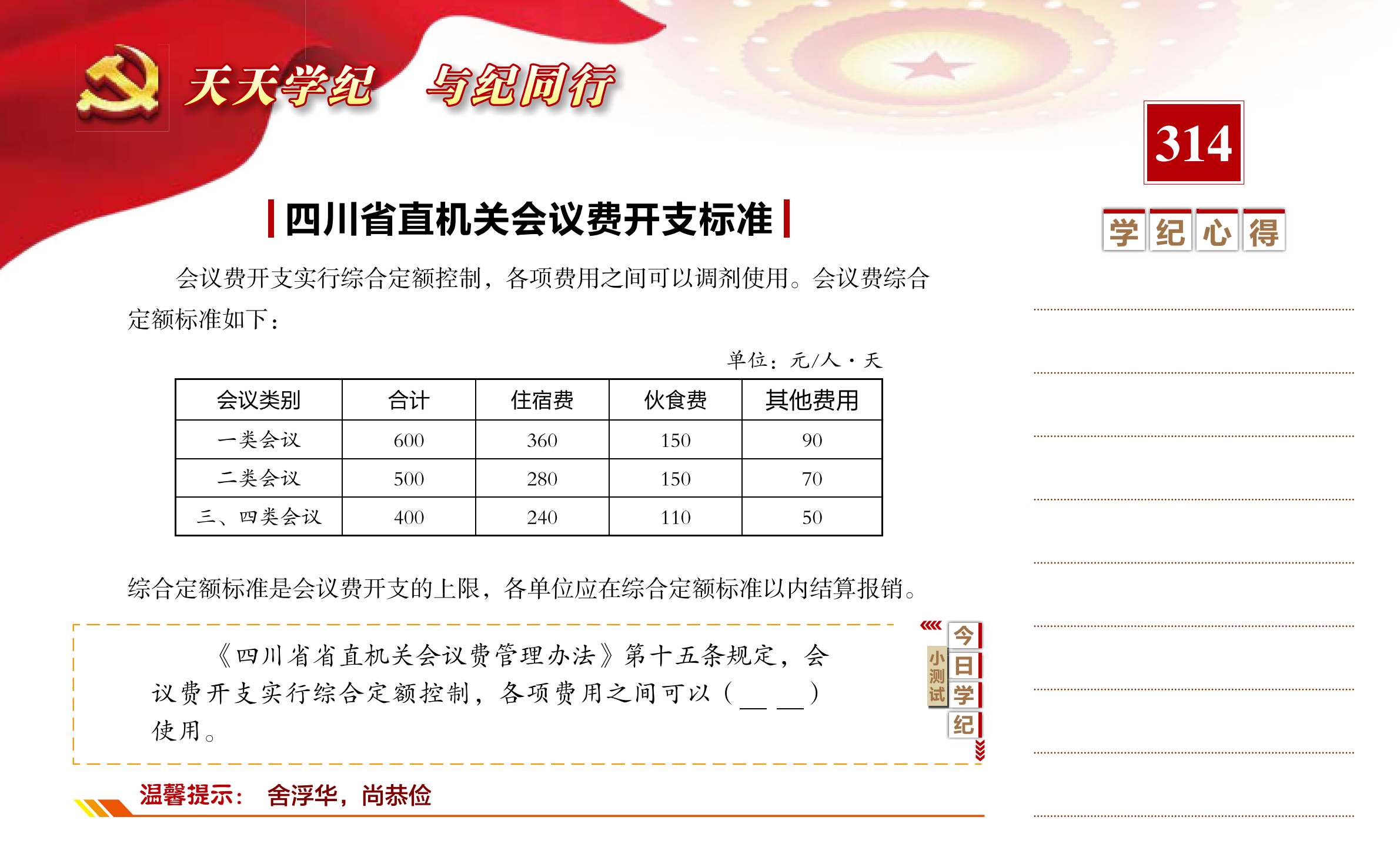 【天天學(xué)紀(jì)】2021年5月11日——會議開支各項費用可以適度調(diào)劑使用