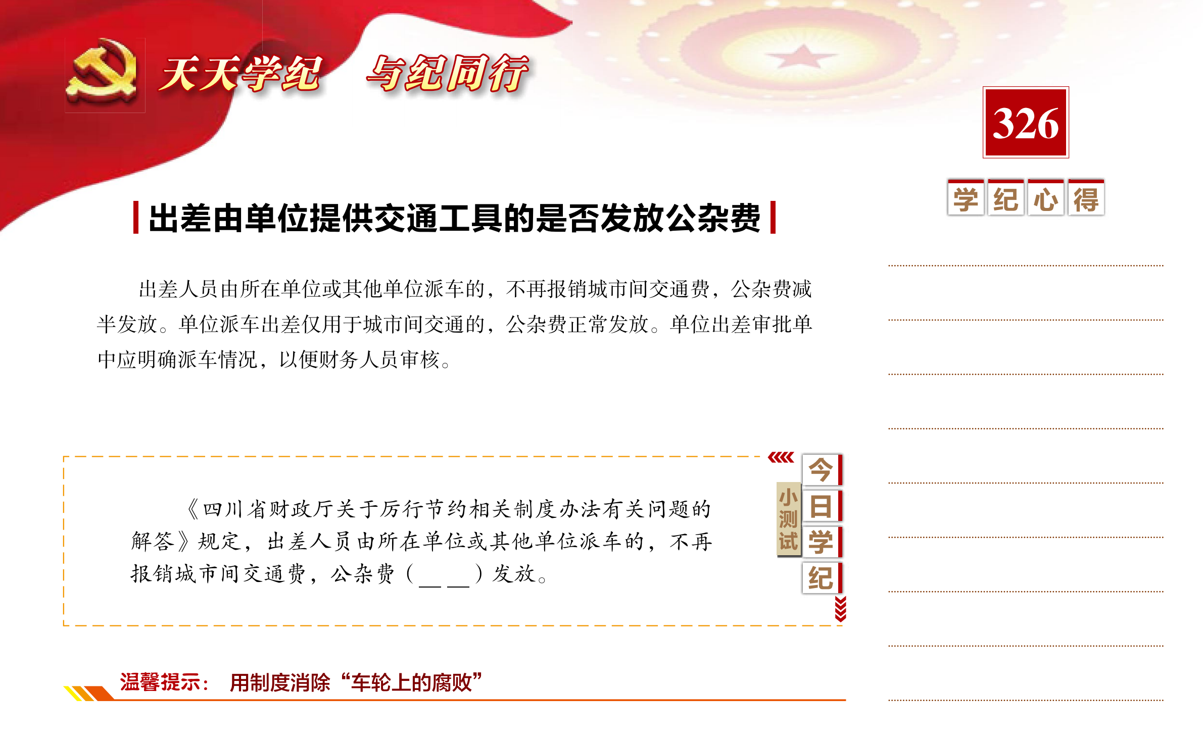 【天天學(xué)紀(jì)】2021年5月22日——出差由單位提供交通工具的是否發(fā)放公雜費