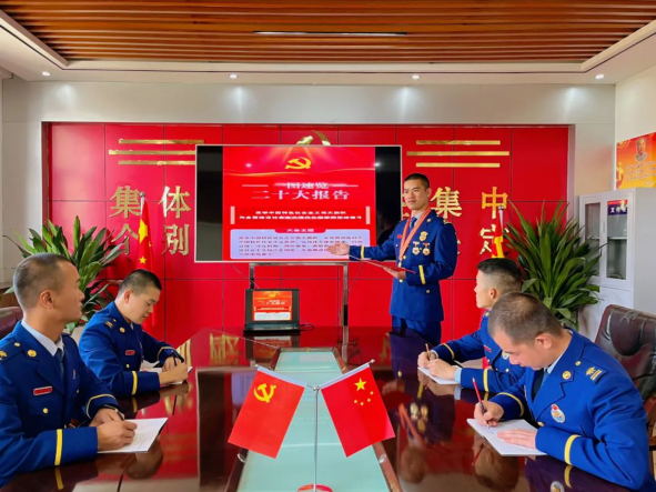 福建省森林消防總隊廈門市駐防分隊采取多種方式學習二十大報告。黃山鴻攝
