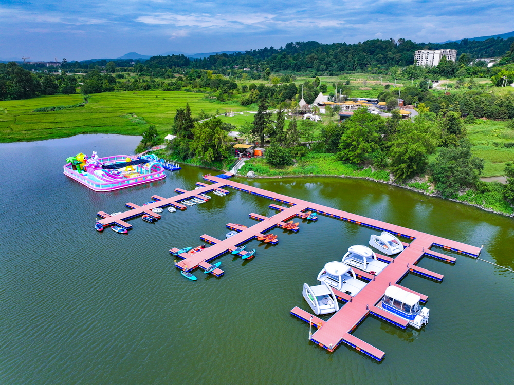 園區(qū)內(nèi),自駕游客可停車納涼、喝咖啡、燒烤、露營(yíng);在濱湖營(yíng)地,水上城堡是孩子們最喜愛(ài)的游玩項(xiàng)目,而家長(zhǎng)可在一旁體驗(yàn)皮劃艇、槳板、水上自行車、沙灘足球、充氣游艇等?!翱紤]到不少游客是零基礎(chǔ),我們還配備了多位專業(yè)教練和安全員,在確保安全的前提下,讓大家更多更好地享受水上運(yùn)動(dòng)的樂(lè)趣?!睘I湖營(yíng)地主理人雷雨介紹,未來(lái)園區(qū)還將舉行露天電影和音樂(lè)派對(duì)等?!白屛蚁肫饍簳r(shí)夏天的湖邊秘密基地。” “劃重點(diǎn),離成都1個(gè)多小時(shí),速來(lái)?!辈簧倬W(wǎng)友分享著他們玩耍后的感受。