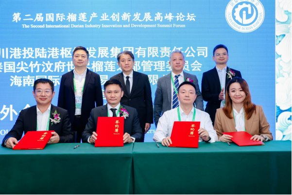 論壇期間,四川陸港公司與泰國(guó)尖竹汶府政府世界榴蓮之都管理委員會(huì)、海南國(guó)際商品交易中心有限公司、泰國(guó)皇家莊園及國(guó)際榴蓮協(xié)會(huì)共同簽署了三份戰(zhàn)略合作框架協(xié)議,內(nèi)容涵蓋產(chǎn)品標(biāo)準(zhǔn)化、貿(mào)易規(guī)模擴(kuò)大、物流通道建設(shè)以及榴蓮海外倉(cāng)建設(shè)等多個(gè)方面。各方將整合泰國(guó)產(chǎn)地與中國(guó)市場(chǎng)資源,共同構(gòu)建覆蓋“原產(chǎn)地—海外倉(cāng)—集散中心—終端市場(chǎng)”的高效榴蓮產(chǎn)業(yè)供應(yīng)鏈體系,推動(dòng)榴蓮產(chǎn)業(yè)向品牌化、數(shù)字化方向發(fā)展,進(jìn)一步夯實(shí)公司在全球榴蓮供應(yīng)鏈布局中的合作基礎(chǔ)。