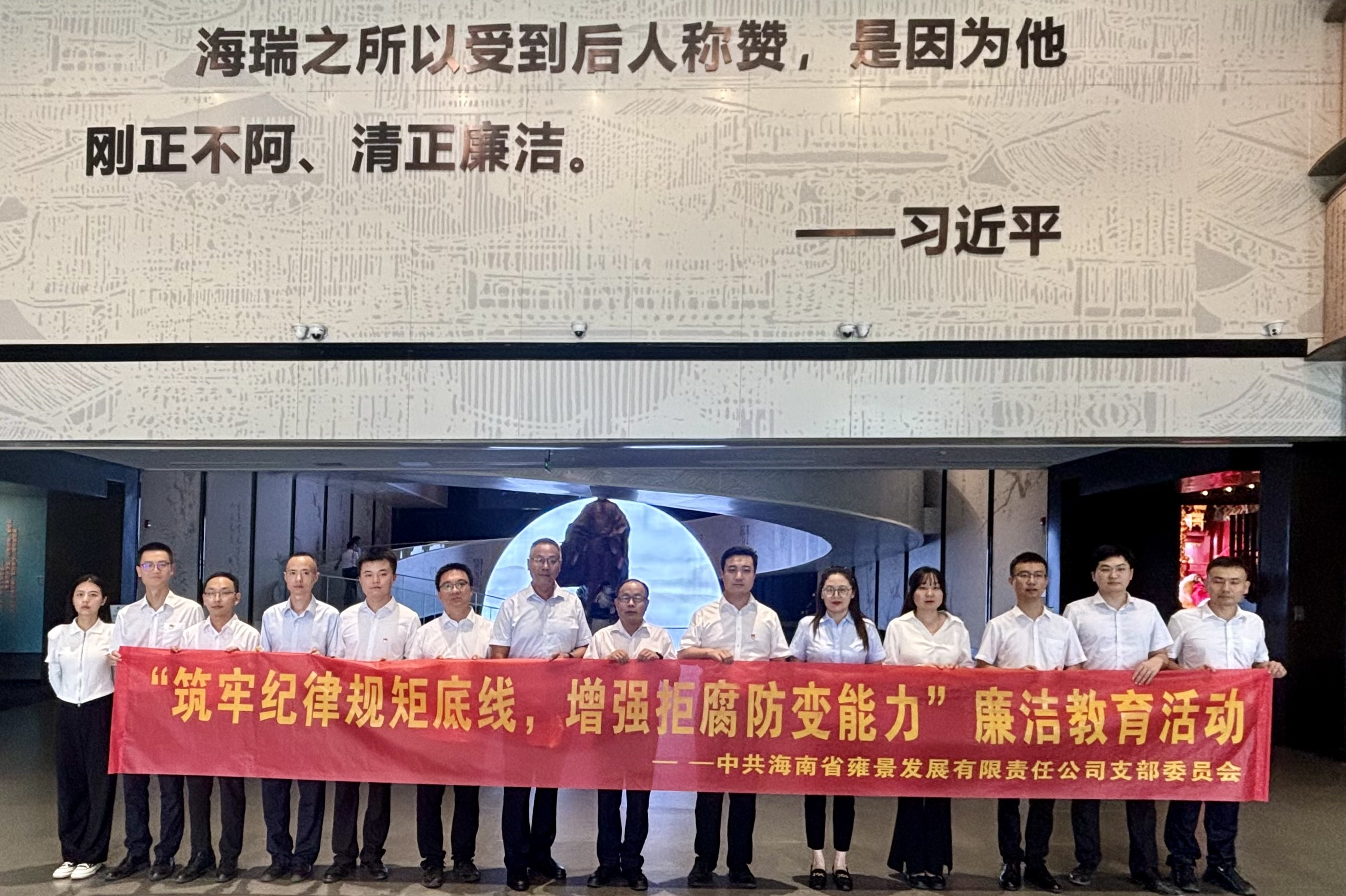 6月14日,海南雍景發(fā)展公司黨支部圍繞“筑牢紀律規(guī)矩底線,增強拒腐防變能力”主題,組織公司全體干部、黨員和及關鍵崗位員工赴??谑泻H鹞幕珗@開展廉潔警示教育活動。