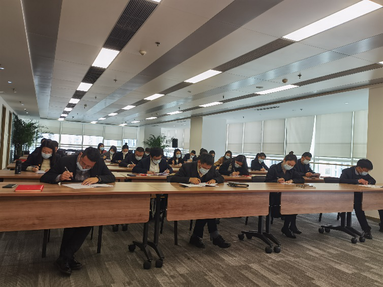 測試未進(jìn)行提前通知,采取突擊閉卷筆試、單人單桌的形式進(jìn)行,是黨建學(xué)習(xí)會議內(nèi)容的有效創(chuàng)新方式。測試卷分為二部分,試題涵蓋了黨史、新中國史、改革開放史、社會主義發(fā)展史等內(nèi)容,同時涵蓋黨建和黨風(fēng)廉政建設(shè)的應(yīng)知應(yīng)會基礎(chǔ)知識,內(nèi)容豐富,針對性強(qiáng)。測試現(xiàn)場大家嚴(yán)格遵守考試紀(jì)律、認(rèn)真答題、營造了濃厚的學(xué)習(xí)測試氛圍。